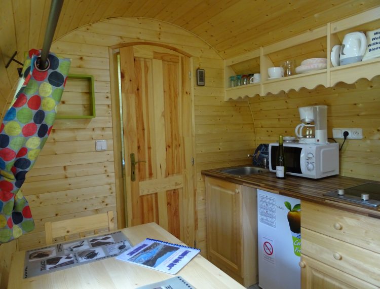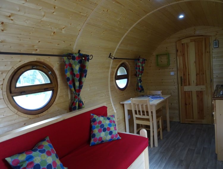 Relaxez-vous dans un ilot de verdure dans nos roulottes viticoles grand confort composé d’un intérieur cocooning avec un espace nuit en alcôve (1 chambre avec un 1 lit 140 x 200), un séjour cuisine avec TV, une grande douche à l’italienne, une cuisine toute équipée et une spacieuse terrasse surélevée.