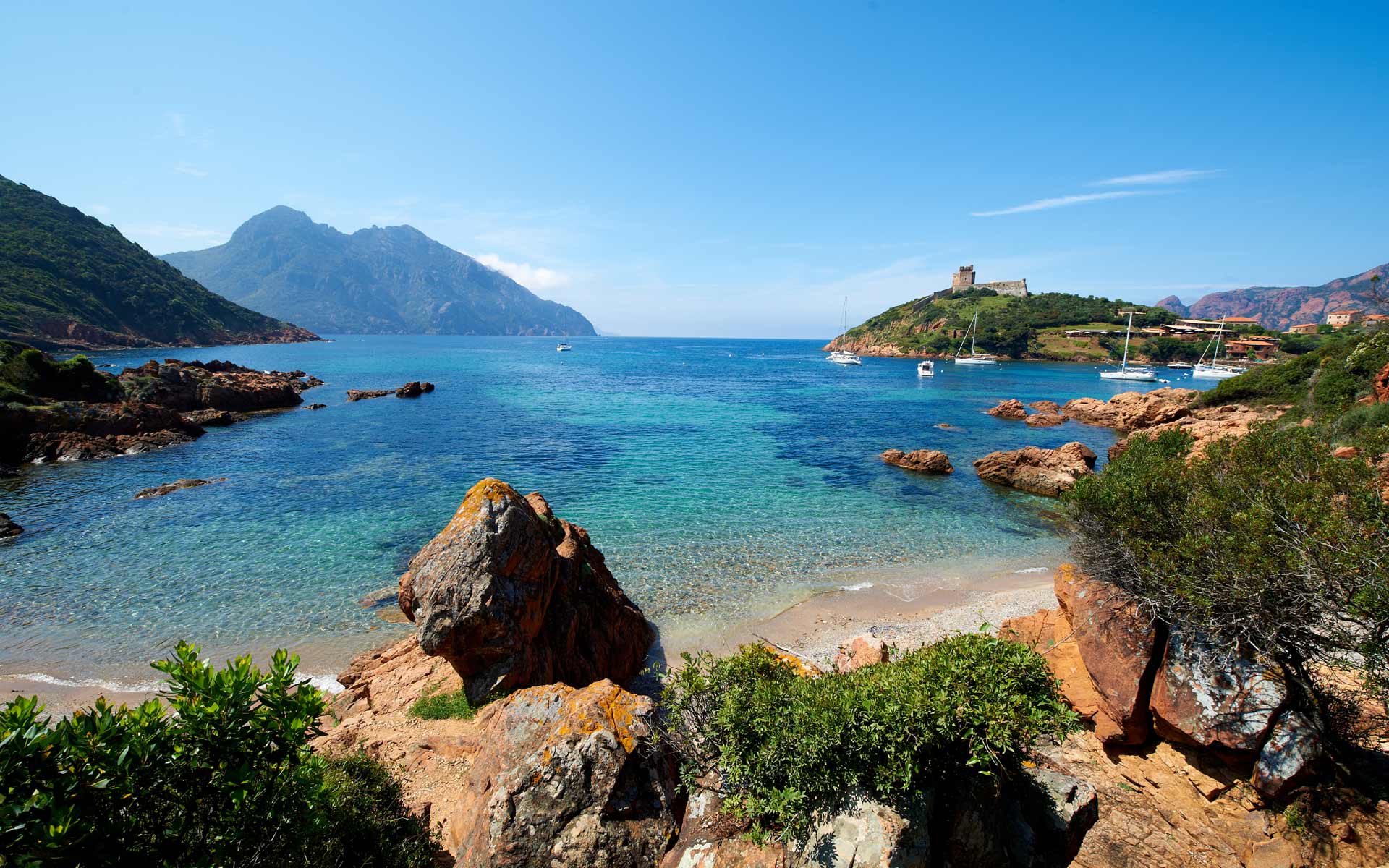 Découvrez les flots bleus du golf de Porto qui caressent les falaises rouges des promontoires et visitez la ville de Ota adossé à la muraille rocheuse qui surplombe le golfe de Porto…ainsi que les calanches de Piana, rochers bizarres aux formes fantastiques se dressent des 2 côtés de la route, créant des précipices insondables qui s’ouvrent jusqu’à la mer… Magnifique.